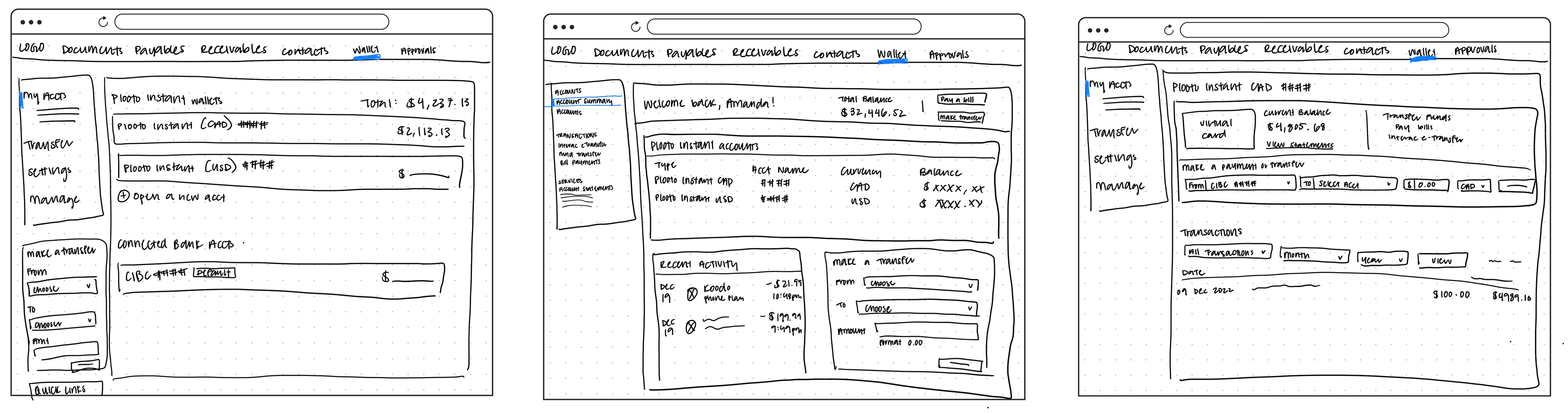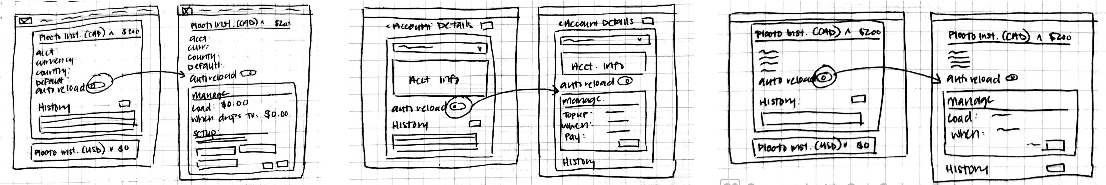 I started with pen and paper to quickly explore different ways we could allow users to transfer funds between accounts.